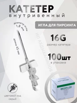 Катетер внутривенный 16G, игла для пирсинга 100шт