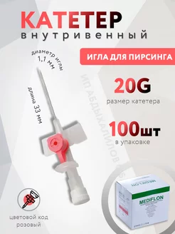 Катетер внутривенный 20G, игла для пирсинга 100шт