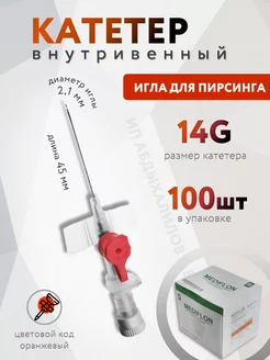 Катетер внутривенный 14G, игла для пирсинга 100шт