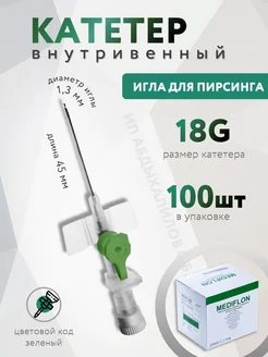Катетер внутривенный 18G, игла для пирсинга 100 шт