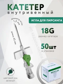Катетер внутривенный 18G, игла для пирсинга 50шт