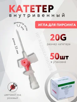 Катетер внутривенный 20G, игла для пирсинга 50шт