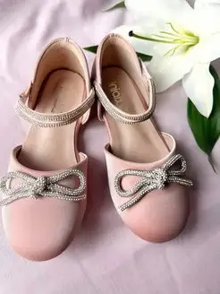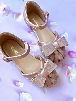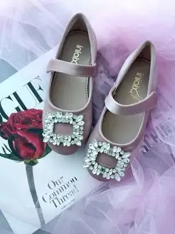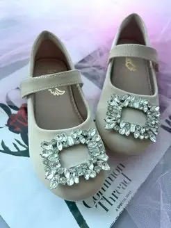 Туфли нарядные новогодние с брошкой бежевые на праздник