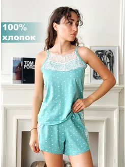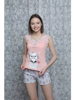 пижама женская хлопковая со штанами и рубашкой с принтом