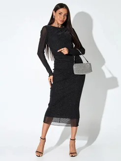Платье праздничное вечернее сетка миди