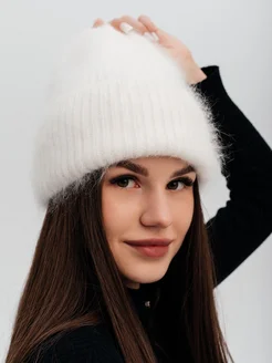 Шапка ангора вязаная с отворотом зимняя