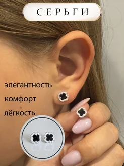 Серьги ванклиф со стразами ониксом клевер двусторонние