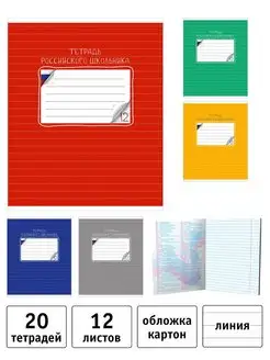 Тетрадь в линейку 12 л, 20 шт. российского школьника
