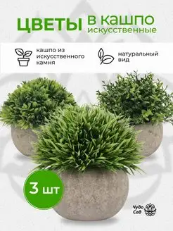 Искусственные цветы в горшке для декора интерьера 3шт