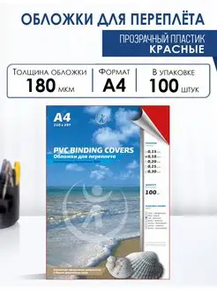 Обложки для переплета прозрачные пластиковые А4, 0,18мм