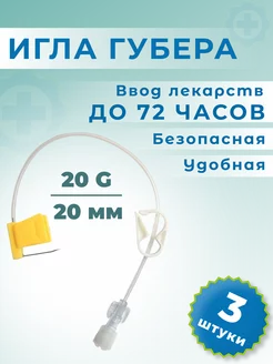 Игла Губера 20G (0,9мм)х20 мм (Франция) с крыльями