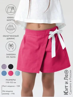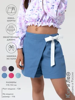Джинсовая юбка шорты с льняной завязкой-бантом