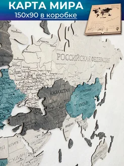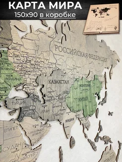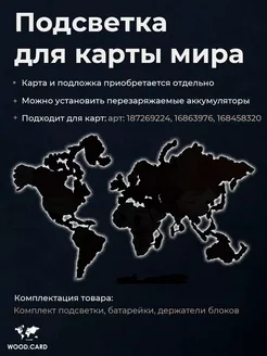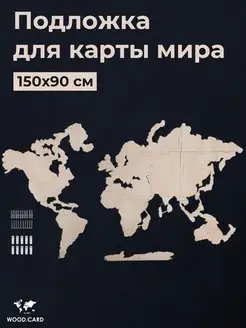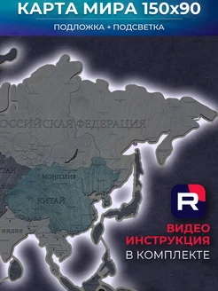 Карта мира деревянная с подсветкой и подложкой 150х90