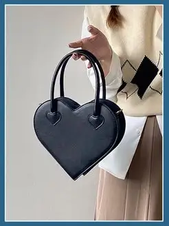 Сумка черная кросс - боди с плечевым ремнем Сердце