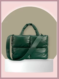 Сумка тоут дутая молодежная из экокожи со съемным ремешком