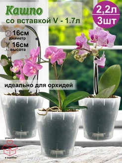 Горшок для орхидеи 2,2л кашпо 3шт автополив прозрачный