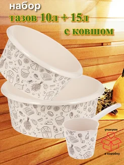 Таз "Русская банька" 10л + 15л с ковшом 1,5л набор для бани