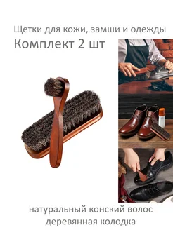 Щетки для обуви 2шт дерево и натуральный конский волос