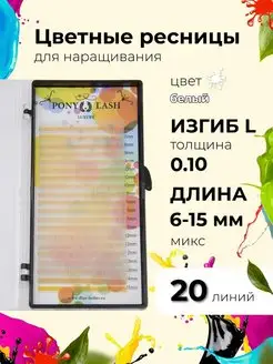 Ресницы для наращивания цветные белые изгиб L 0,10