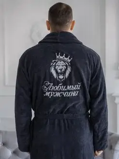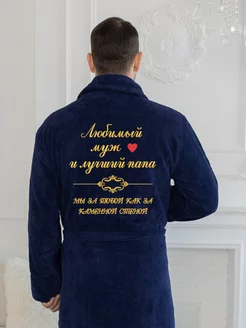 Халат мужской махровый с надписью Любимый муж и лучший папа