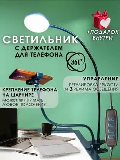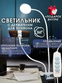 Кольцевая лампа с гибким креплением для телефона и прищепкой