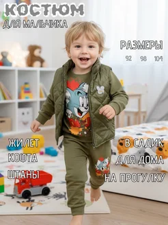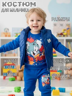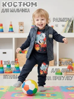 Детский спортивный костюм в садик тройка с жилеткой