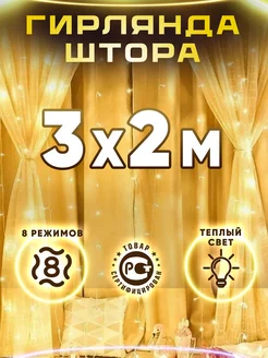 Гирлянда штора 3х2 теплый свет - 1 шт