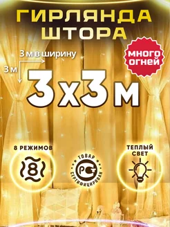 Гирлянда штора 3х3 теплый свет занавес на окно На Новый год
