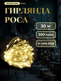 Гирлянда светодиодная роса новогодняя 30 метров тёплая