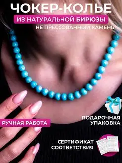 Бусы из натуральных камней колье чокер с бирюзой на шею