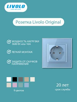 Розетка внутренняя с заземлением, стеклянная, синяя