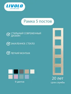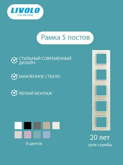Стеклянная рамка на 5 постов для розеток и выключателей