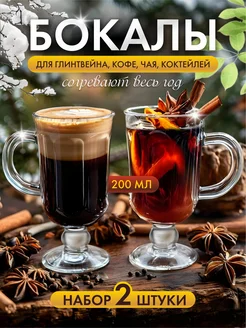 Бокалы стеклянные с ручкой 2 шт для глинтвейна, кофе, чая