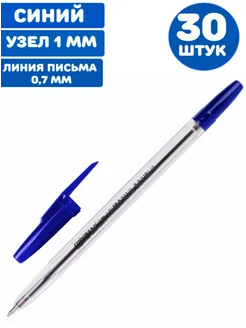 Ручки шариковые синие узел 1 мм, линия письма 0,7 мм 30 шт