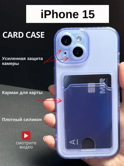 Чехол на iphone 15 айфон 15 прозрачный с карманом для карт