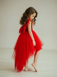 Нарядное красное платье со шлейфом
