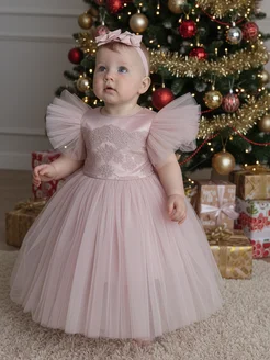 Платье пудровое праздничное нарядное на Новый год