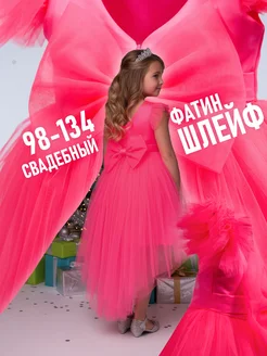 Нарядное ярко-розовое платье со шлейфом