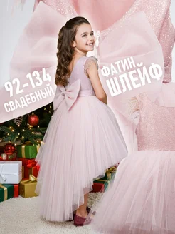 Нарядное пудровое платье с праздничными блестками и шлейфом