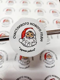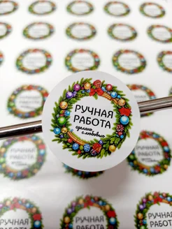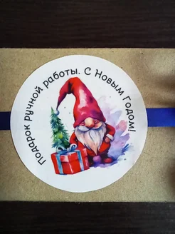 Наклейки новогодние на подарки Ручная работа круглые 70 штук