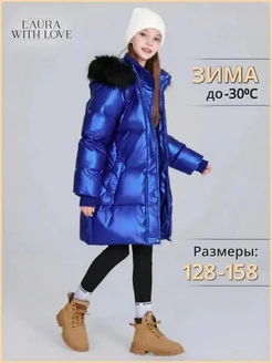 Куртка пуховик зимняя удлиненная с меховым капюшоном