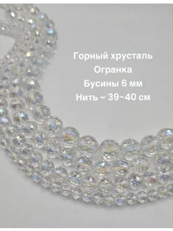 Горный хрусталь (огранка), бусины 6 мм, нить 39-40 см