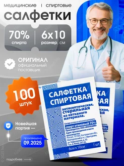Спиртовые салфетки медицинские 100 шт, размер 60х100 мм