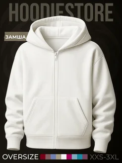 Зип худи оверсайз с капюшоном на молнии без начеса
