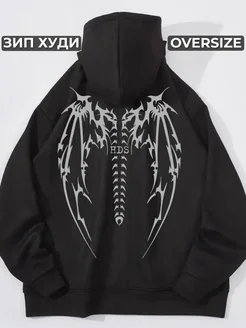 Зип худи с принтом оверсайз с капюшоном на молнии без начеса