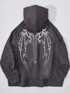 Зипка оверсайз с капюшоном на молнии без начеса с принтом