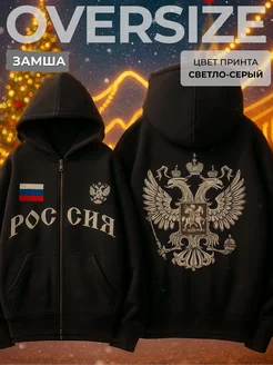 Зип худи с принтом Россия оверсайз с капюшоном на молнии