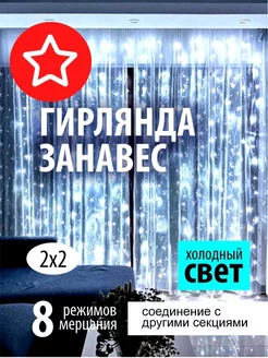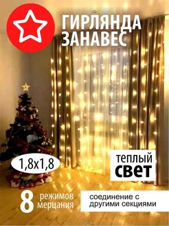 Новогодняя штора гирлянда теплый свет 1,8х1,8м