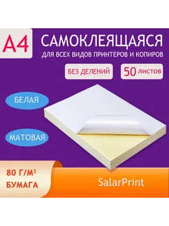 Бумага самоклеящаяся, белая матовая, А4, 50 листов