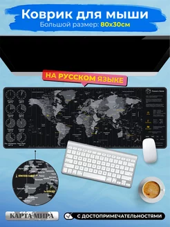 Большой игровой коврик Карта для мышки пк и макбука 80х30